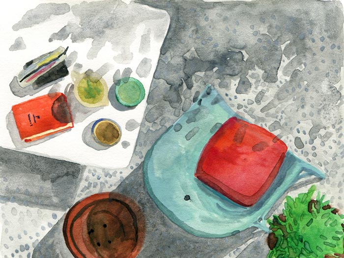 Anstatt herumzureisen verschicke ich meinen Freunden nun Postkarten von zuhause.